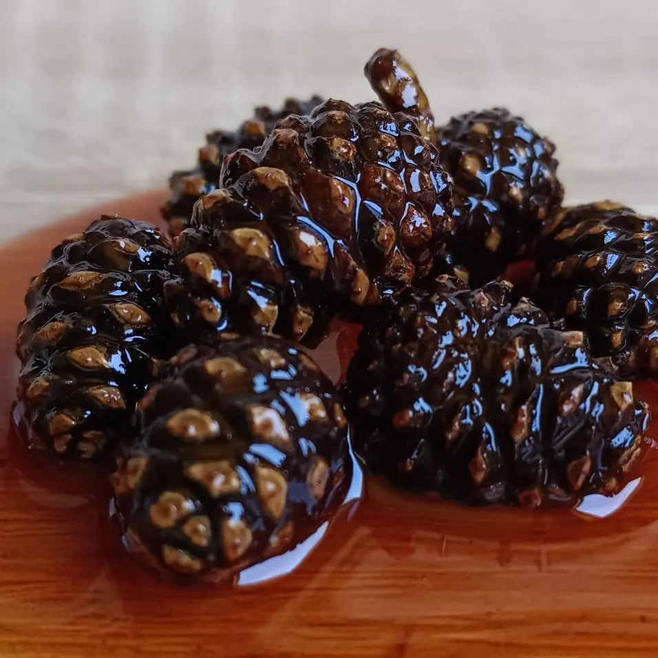Густое сосновое варенье Алатау с цельными кедровыми шишками - баланс вкуса и кладезь пользы. Вкус есть польза - так можно сказать про все наши сладости. В каждой ложечке гармонично сочетаются нотки хвои, выраженные ореховый привкус и деликатная сладость. Что может быть лучше, чем такой топпинг для мороженного, выпечки или творога. А чай или кофе с янтарным сиропом подарят незабываемые вкусовые ощущения. В жару с шишково-кедровым вареньем получатся удивительные прохладительные напитки.